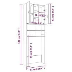 - Afmetingen: 64 x 25,5 x 190 cm (B x D x H)