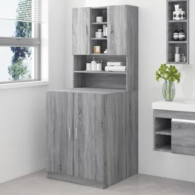Met deze wasmachinekast kan je extra opbergruimte in de badkamer of wasruimte creëren en de ruimte optimaal gebruiken.