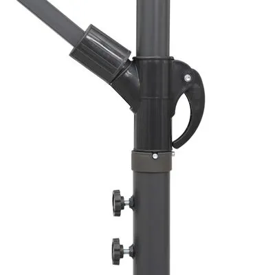 Het parasoldoek is gemaakt van uv-beschermend en anti-vervagend polyester waardoor het je optimale bescherming tegen de zon biedt en het gemakkelijk schoon te maken is. De parasol beschikt over een stevige kruisvoet die bijdraagt aan de stabiliteit. Het exclusieve ontwerp van deze parasol stelt je in staat om grote delen van de zon te blokkeren. De sterke aluminium paal, samen met de 16 duurzame baleinen, maakt de parasol zeer stabiel en duurzaam. De tuinparasol kan eenvoudig geopend en gesloten worden dankzij het zwengelmechanisme. Het product is eenvoudig te monteren.