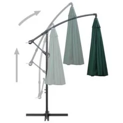 Het parasoldoek is gemaakt van uv-beschermend en anti-vervagend polyester waardoor het je optimale bescherming tegen de zon biedt en het gemakkelijk schoon te maken is. De parasol beschikt over een stevige kruisvoet die bijdraagt aan de stabiliteit. Het exclusieve ontwerp van deze parasol stelt je in staat om grote delen van de zon te blokkeren. De sterke aluminium paal, samen met de 16 duurzame baleinen, maakt de parasol zeer stabiel en duurzaam. De tuinparasol kan eenvoudig geopend en gesloten worden dankzij het zwengelmechanisme. Het product is eenvoudig te monteren.