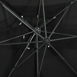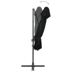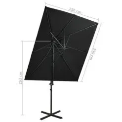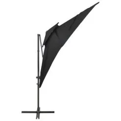 Het parasoldoek is gemaakt van uv-beschermend en anti-vervagend polyester waardoor het je optimale bescherming tegen de zon biedt en het gemakkelijk schoon te maken is. De parasol beschikt over een stevige kruisvoet die bijdraagt aan de stabiliteit. Het exclusieve ontwerp van deze parasol stelt je in staat om de parasol te kantelen en 360 graden te draaien om zo de zon te kunnen blokkeren. De sterke aluminium paal, samen met de 8 baleinen, maakt de parasol zeer stabiel en duurzaam. Deze tuinparasol kan eenvoudig geopend en gesloten worden dankzij het zwengelmechanisme. Het dubbele dak zorgt voor extra ventilatie.